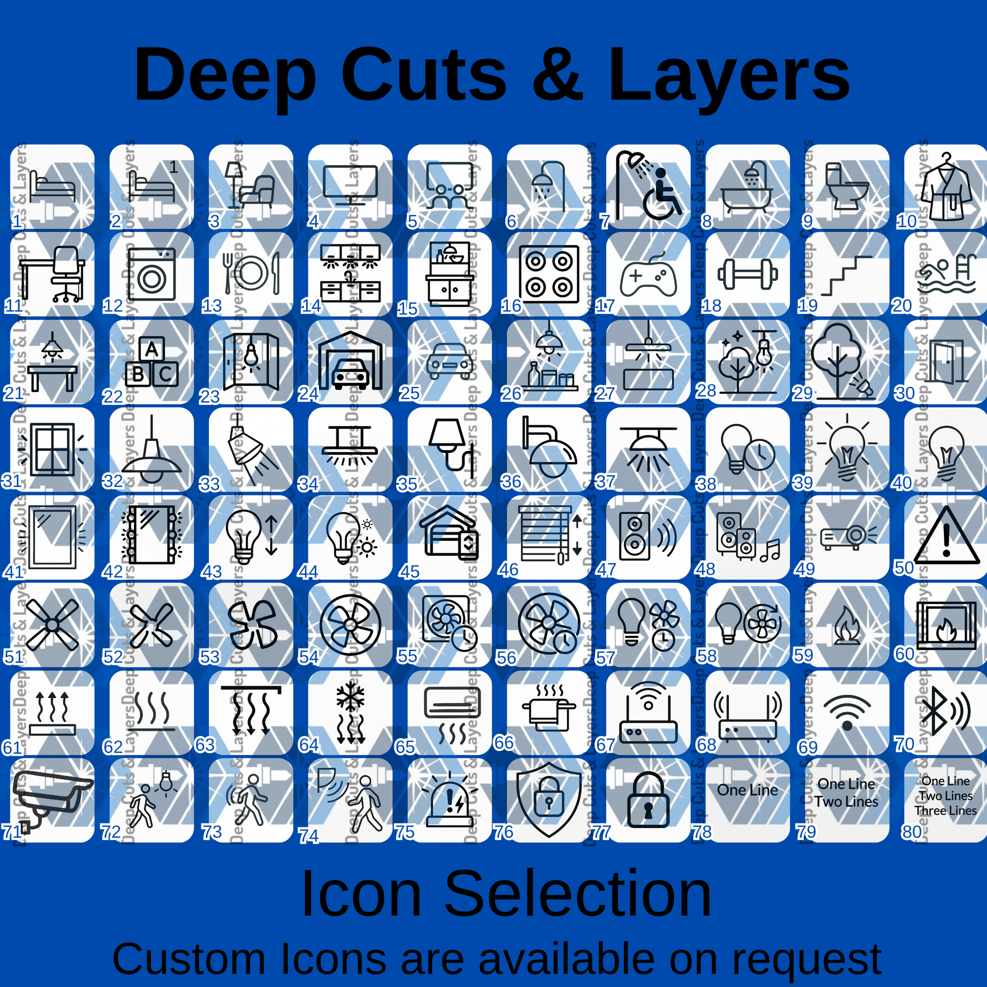 - Icon + Text – “Pantry” with a door icon, “Deck Lights” with a bulb